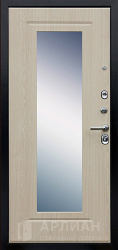 Белая входная дверь с зеркалом с повышенной звукоизоляцией и темной фурнитурой снаружи №21