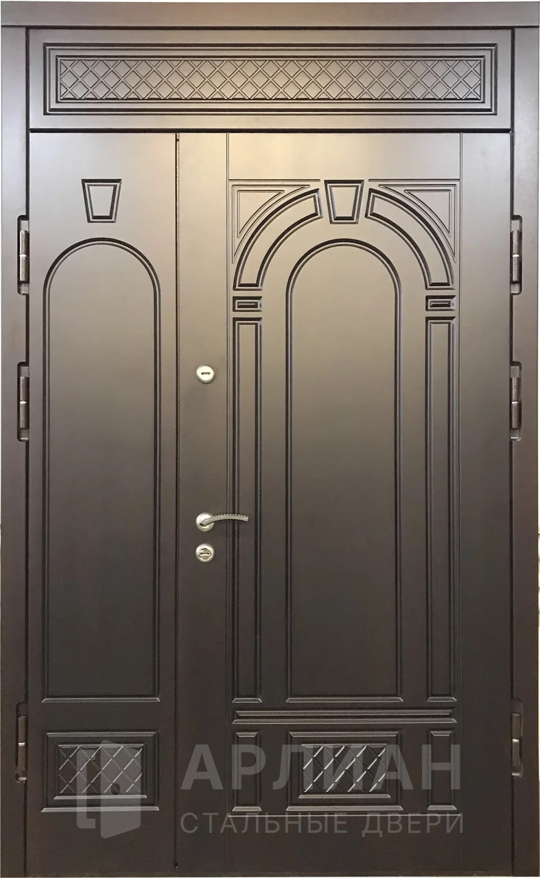 Металлическая входная дверь в коттедж с верхней фрамугой №10