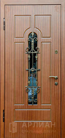 Фото №2 «Металлическая дверь МДФ шпон со стеклом и ковкой №19»
