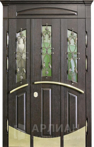 Арочная двустворчатая стальная дверь для загородного дома №125